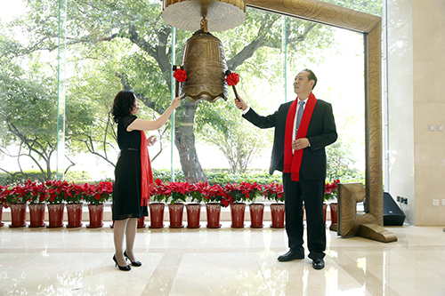 在主持人的引導(dǎo)下,控股股東曹蔚女士代表艾科技術(shù)敲響公司成功掛牌上市的寶鐘。祝愿艾科技術(shù)在新三板的資本平臺(tái)上,日新月異,蒸蒸日上,佳績(jī)斐然,再創(chuàng)輝煌。